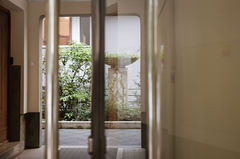 Arriving home is a great experience thru the hallway facing the inner courtyard (with a statue) and the separate toilet opens from there. The kitchen is accessible via a real Bauhaus invention: a small premise functioning as an odor trap also having a door to the dining room.